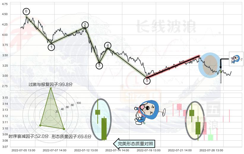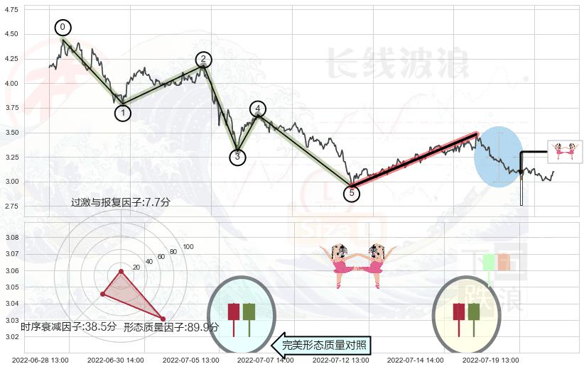 ➢ 🕰 价格走势在2022-07-21 14:00:00至2022-07-22 13:00:00期间形成下跌螺旋桨,残存影响值:-5.78