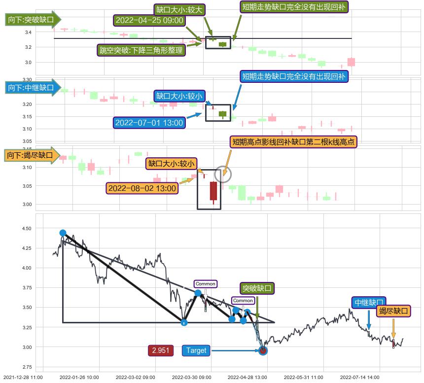 ➢ 2022-08-02 13:00形成:向下跳空【竭尽】缺口