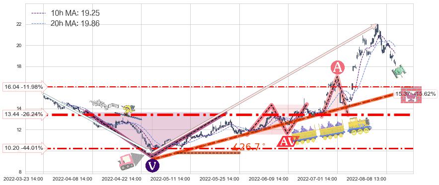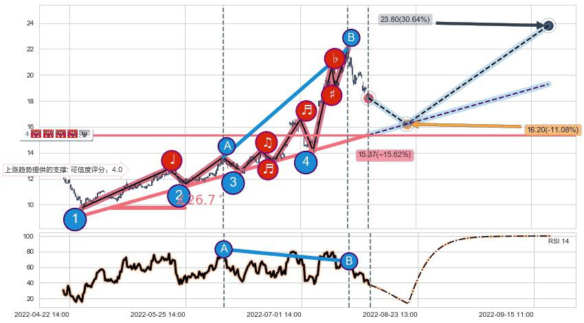 ➢ 预测:2022-08-22 11:00,【小幅回撤】稳定目前上涨趋势的前提下,预测价格:16.20