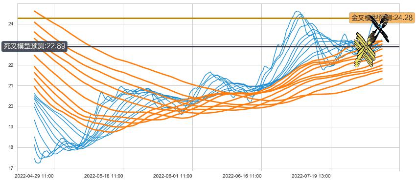 ➢ 45小时均线于(08-03 14:00: 22.66)形成【金叉】基于【金叉历史模型】预测金叉后最高波峰价格: 23.70, 金叉后最高价格24.55,已经上涨超出预测最高波峰价格, 预期回调