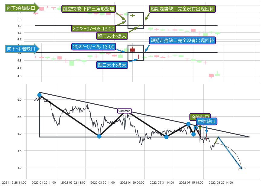 ➢ 2022-08-10 13:00形成:向下跳空【竭尽】缺口