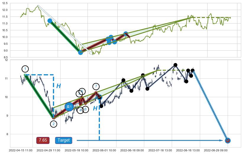 ➣ 最小中继整理跌幅→𝐇: 2.190 (𝐇旗杆的长度:旗杆起点→顶点)