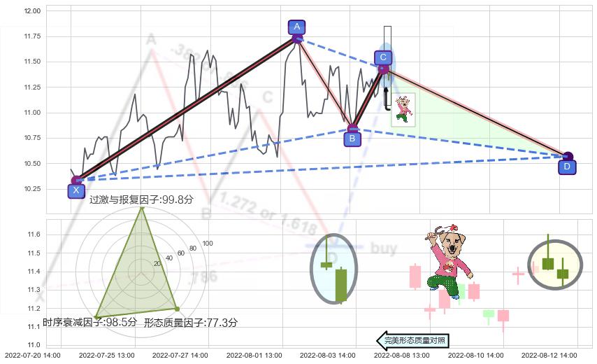 ➢ 🕰 价格走势在2022-08-12 13:00:00至2022-08-12 14:00:00期间形成射击之星形态,残存影响值:-7.76