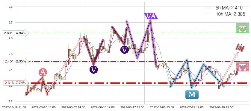 ♘ 阻力价格位2.631,可信任强度51.31%,距离最后交易2022-08-12 13:00形成的收盘价格2.510相差 +4.84%