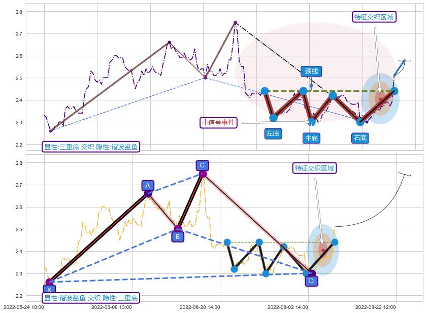 ➢ 三重底属【中级别信号事件】谐波鲨鱼属【长级别信号事件】中长周期组合信号事件,中长事件长度比50.67%