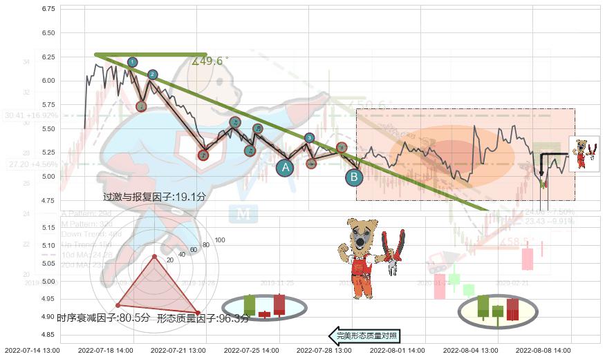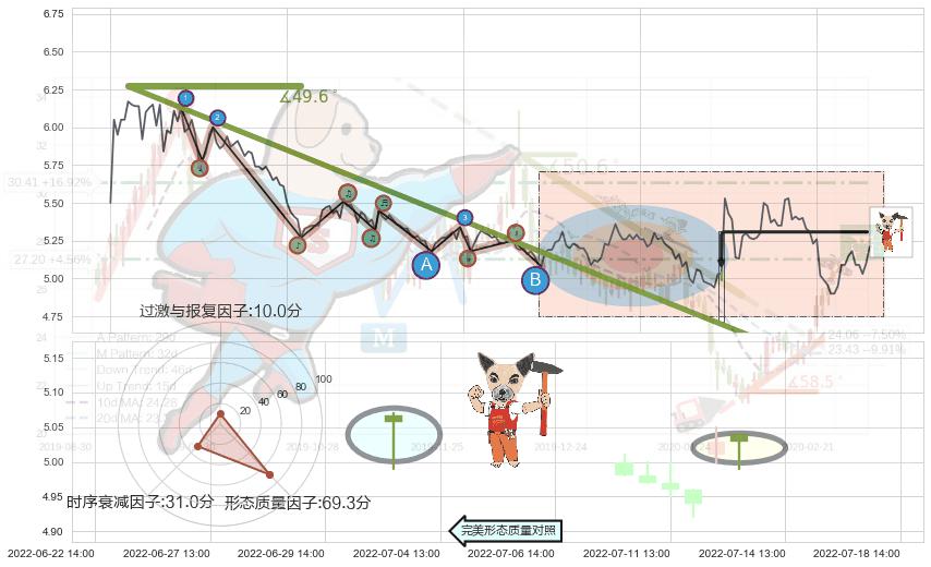 ➣ 2022-05-11 09:00-2022-06-21 13:00下跌趋势存在反转上涨[机会],其原下跌趋势的阻力位(4.28)已被突破[强支撑信号],原下跌趋势角度: 49.6˚