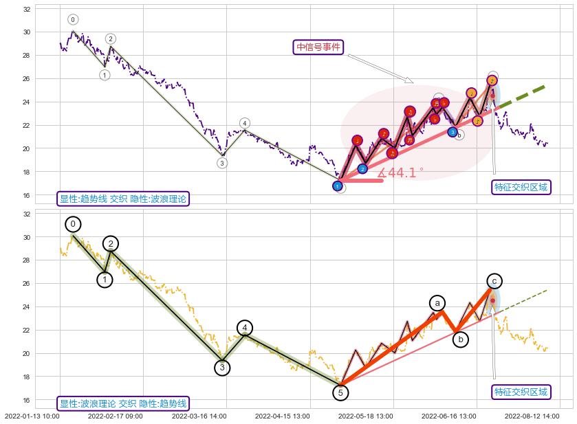 从2022-07-25 13:00至2022-08-12 14:00,共包含30个小时,阶段股价下跌-1.43%,阶段股价变动位移路程比: 1 : 19