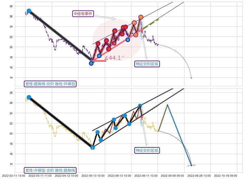 ➢ 趋势线属【中级别信号事件】升楔型属【长级别信号事件】中长周期组合信号事件,中长事件长度比43.46%