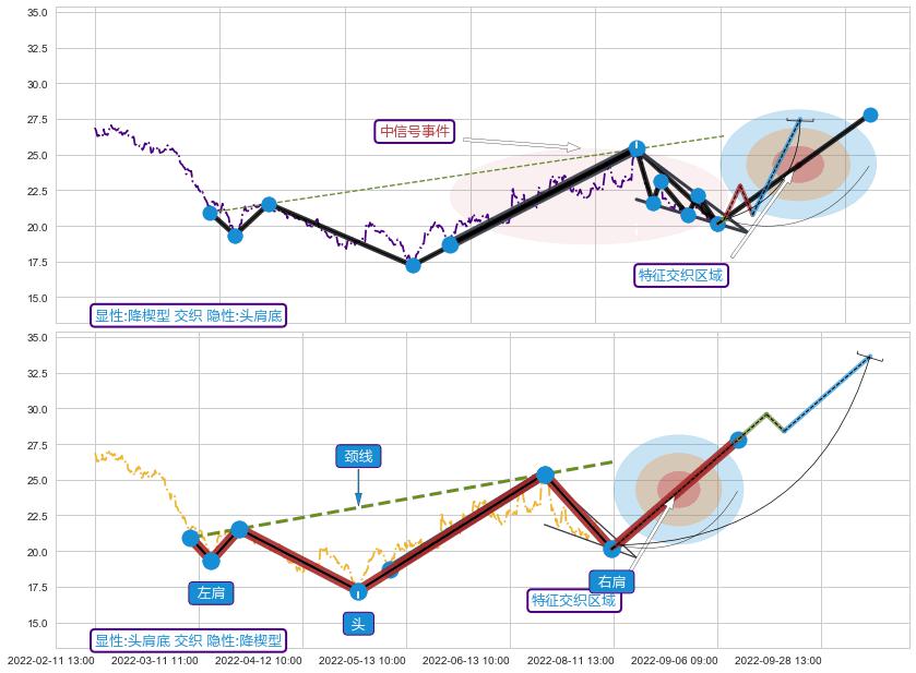➢ 降楔型属【中级别信号事件】头肩底属【长级别信号事件】中长周期组合信号事件,中长事件长度比44.81%