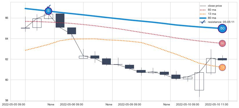 📝 多条均线形成死叉后走势最低价格达到: 72.49