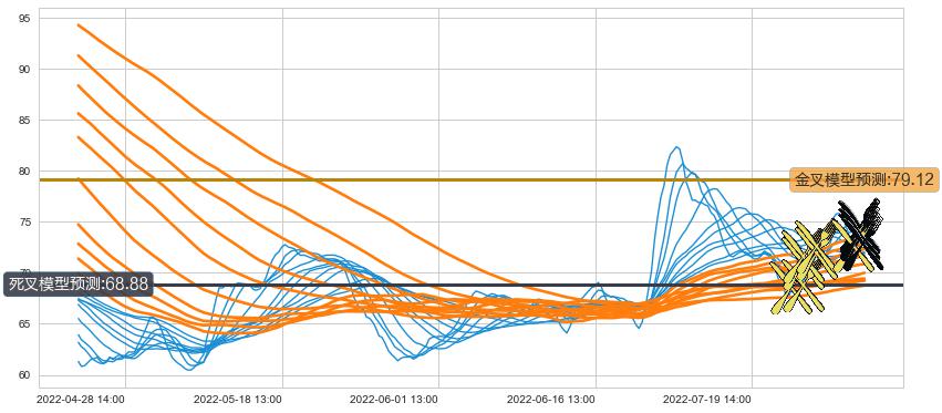 ➣ 34小时均线于(07-29 14:00: 71.56)形成【金叉】基于【金叉历史模型】预测金叉后最高波峰价格: 77.10, 金叉后最高价格77.65,已经上涨超出预测最高波峰价格, 预期回调
