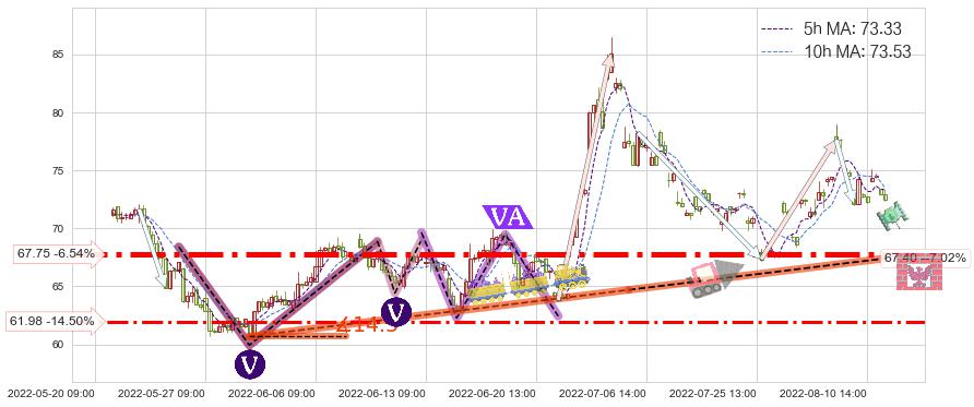 ➣ 【仅预测突破】最后价格:72.49与预测突破价格:71.39→【空间中等】后续最小【整理】第一目标价格→(08-22:11: 60.46 )