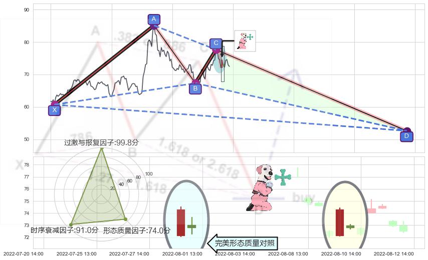➢ 谐波蝴蝶c拐点下跌阻力 🔜 波浪理论c点反弹终止反转下跌 综合量化分数:35.53 【强烈看空】