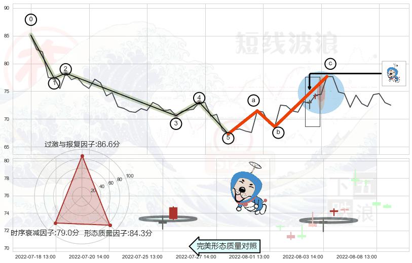 ➢ 🕰 价格走势在2022-08-03 14:00:00至2022-08-04 13:00:00期间形成上涨螺旋桨形态,残存影响值:7.43