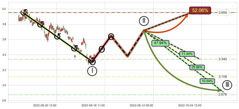 2022-06-06: 第一阻力位3.807有效抑制了下跌浪,成功阻止了价格的继续下跌。