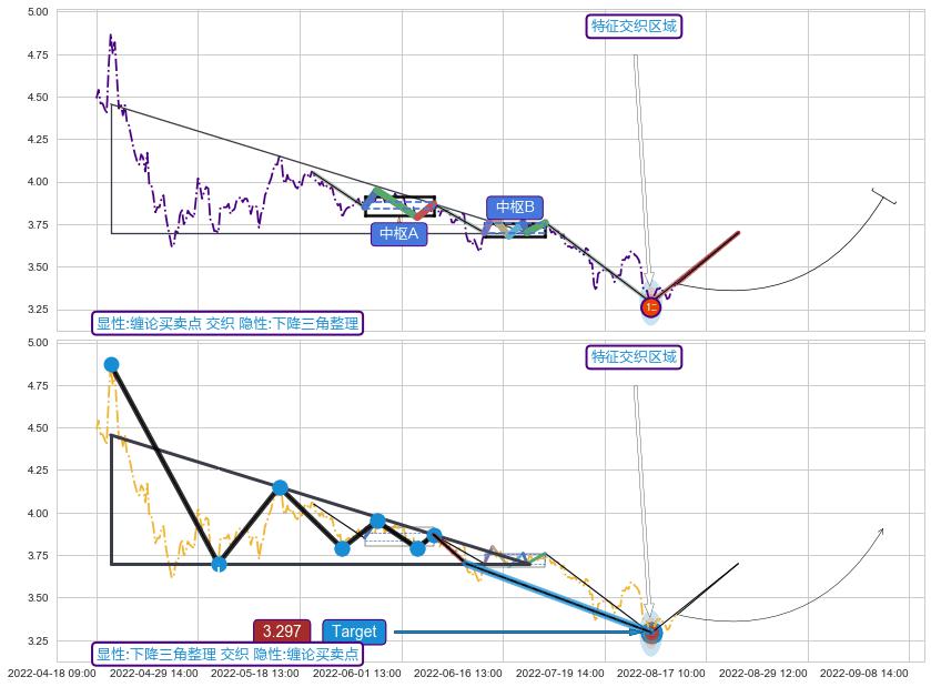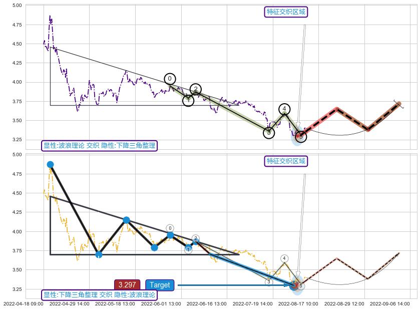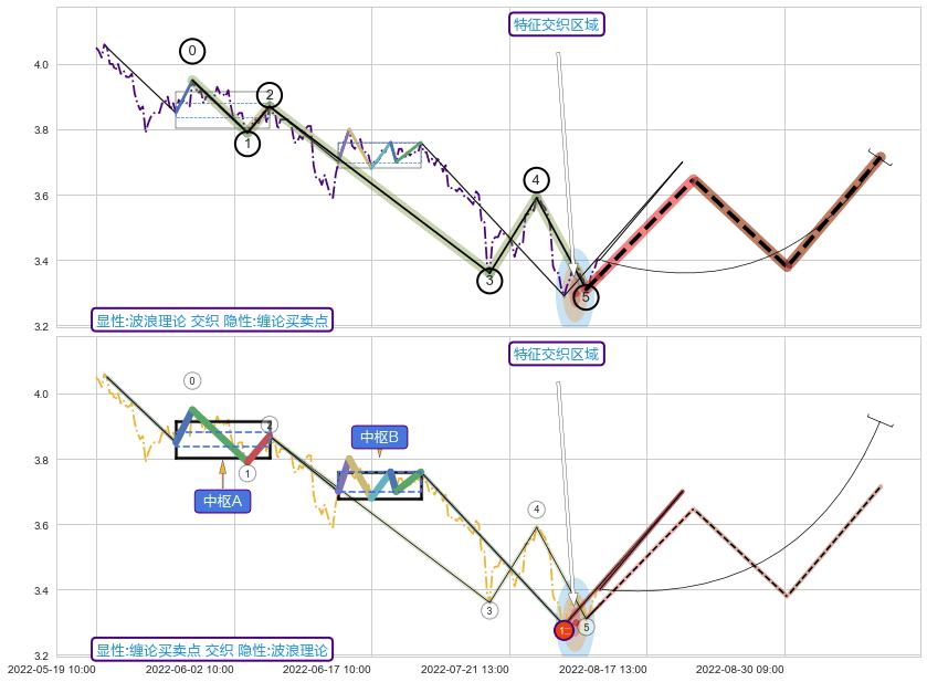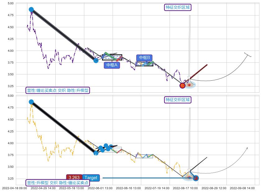 ♘ 在最后的下跌阶段2022-05-20 09:00至2022-08-11 14:00,存在 持续未破位的阻力位 ,阻力价格3.595,可信任强度88.41%,其距离最后价格3.400相差 +5.72%