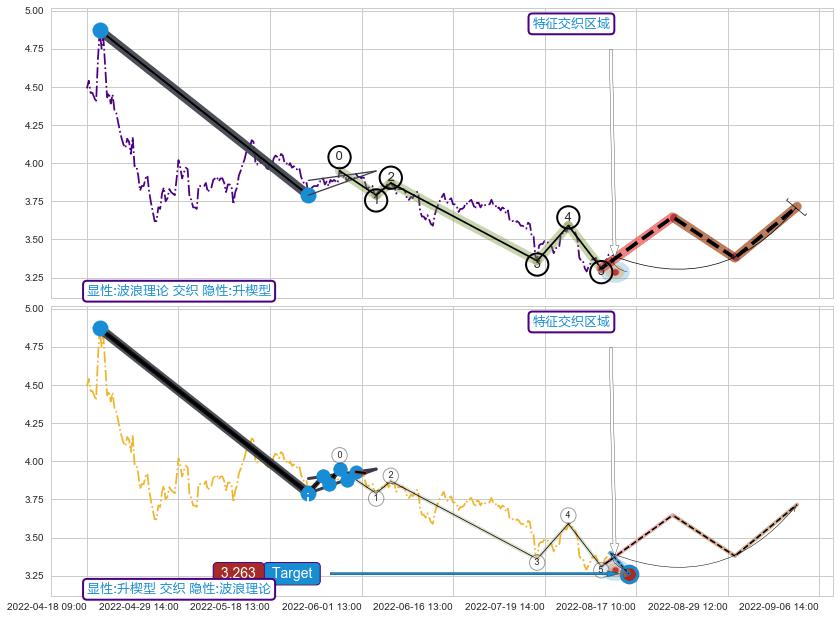 2022-05-25: 第一阻力位3.807有效抑制了下跌浪,成功阻止了价格的继续下跌。