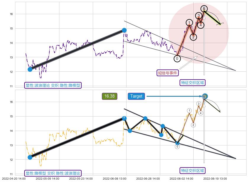 ➢ 波浪理论属【短级别信号事件】扩散三角反转属【长级别信号事件】长短周期组合信号事件, 短长事件长度比16.80%