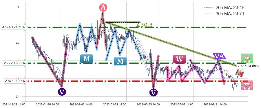 ♘ 阻力价格位3.174,可信任强度99.00%,距离最后交易2022-08-12 14:00形成的收盘价格2.610相差 +21.59%