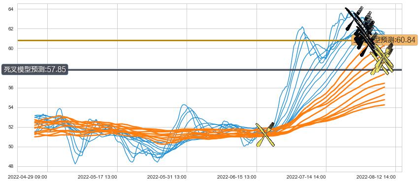 ➣ 30小时均线于(08-02 14:00: 62.48)形成【死叉】基于【死叉历史模型】预测死叉后最低波谷价格: 59.29, 死叉后最低价格57.84,已经下跌超出预测最低波谷价格, 预期反弹