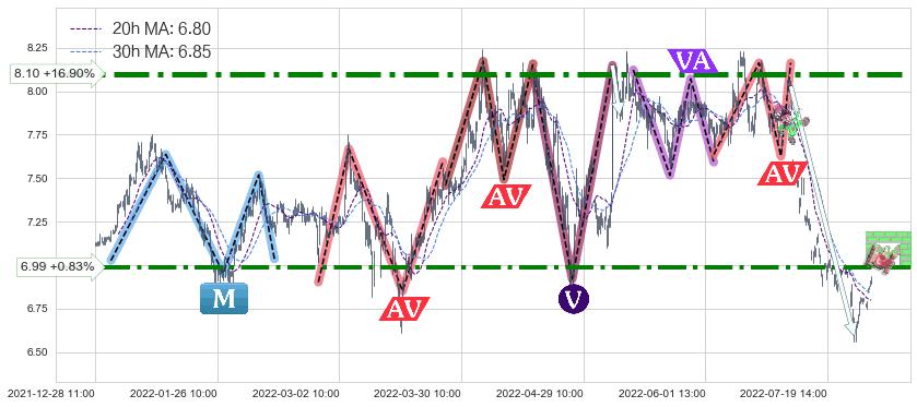 ♘ 阻力价格位6.99,可信任强度78.00%,距离最后交易2022-08-12 14:00形成的收盘价格6.93相差 +0.83%