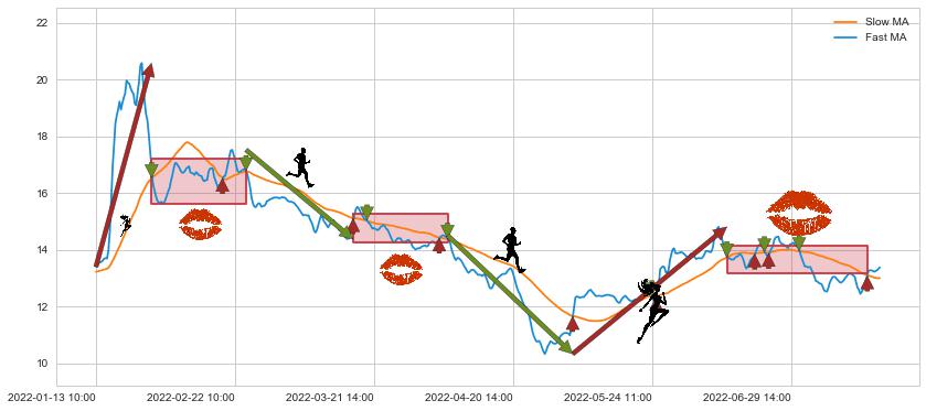 03-17 09:00至04-07 11:00 慢线与快线多次接触,存在上下穿越,有缠绕