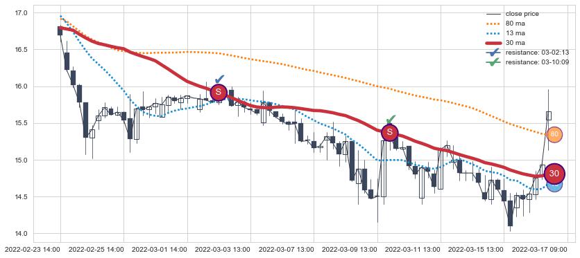 ➣ 60小时均线于(08-05 13:00: 13.21)形成【金叉】基于【金叉历史模型】预测金叉后最高波峰价格: 14.23, 金叉后最高价格13.43,尚未达到预测最高波峰价格, 预期继续上涨