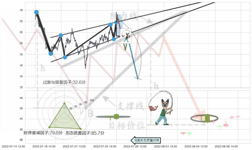 ➣ 下跌螺旋桨 + 升楔型临近支撑猜想转换阻力下跌信号叠加后【目标达成率】中等,【看空】信号叠加【存续影响中等】