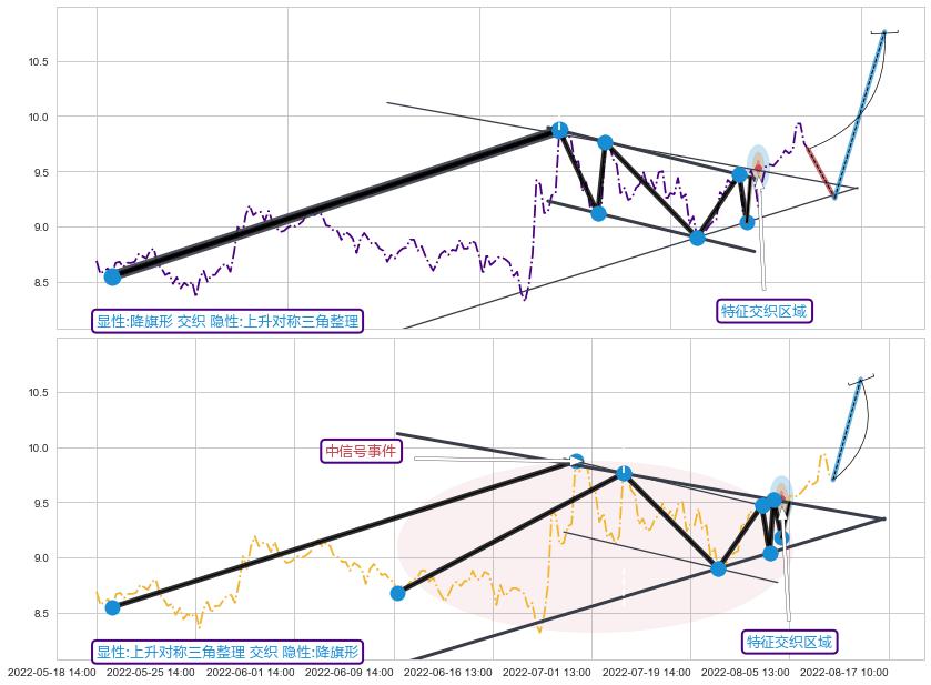 ➢ 上升对称三角整理属【中级别信号事件】缠论中枢点属【长级别信号事件】中长周期组合信号事件,中长事件长度比41.84%
