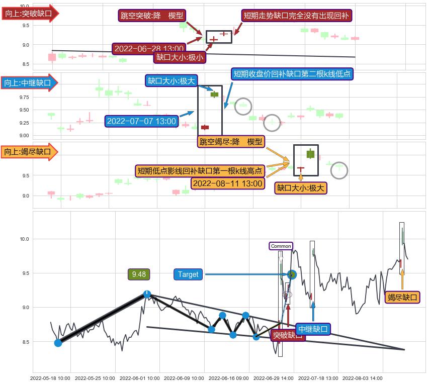 ➢ 2022-08-11 13:00形成:向上跳空【竭尽】缺口