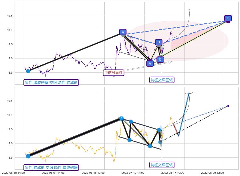 ➢ 未完成【螃蟹】形态起点X: 06-30:13, 已到达C点: 08-02:14, 预测最终D点: 08-30:11, 共130交易小时