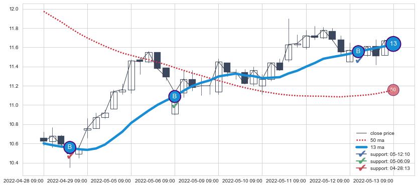 ➣ 45小时均线于(08-10 14:00: 12.88)形成【金叉】基于【金叉历史模型】预测金叉后最高波峰价格: 13.92, 金叉后最高价格13.29,尚未达到预测最高波峰价格, 预期继续上涨