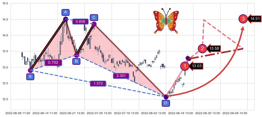➣ 已完成【蝴蝶】形态起点X: 06-08:11, 终点D: 08-02:13, 共101交易小时