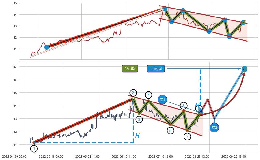 ➣ 最小中继整理涨幅→𝐇: 3.380 (𝐇旗杆的长度:旗杆起点→顶点)