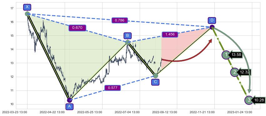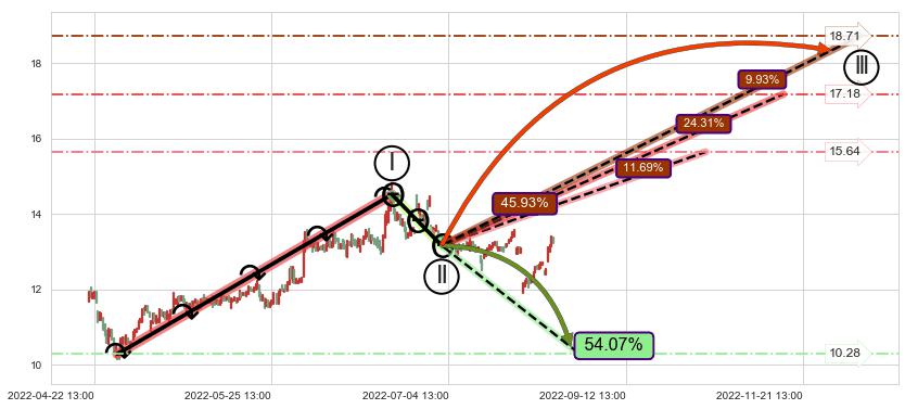 ➣ D点拟合预测价格15.62,距离最后交易收盘价格13.26相差 +17.82%