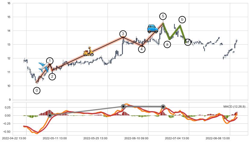➣ 波浪理论:猜想达到c点后小回调终止反转上涨 → 上涨 → 【拐点】临近 → 阶段均值回复结束后继续大周期趋势跟踪