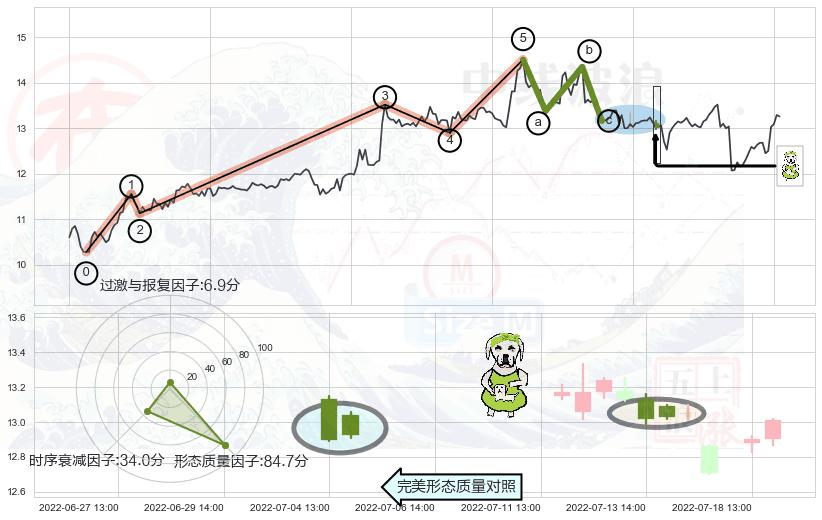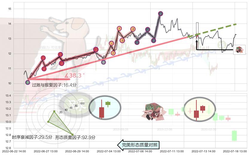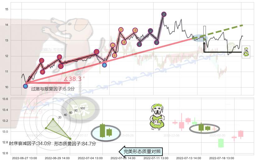 ➢ 2022-04-27 10:00-2022-07-04 14:00上升趋势存在反转[风险],其原上升趋势的支撑位(13.97)已破位[强阻力信号],原上升趋势角度: 38.3˚
