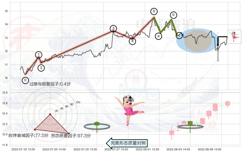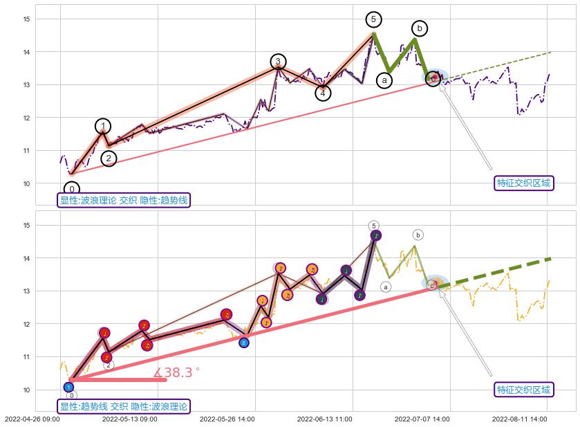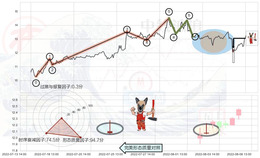从2022-07-15 14:00至2022-08-12 14:00,共包含41个小时,阶段股价上涨6.25%,阶段股价变动位移路程比: 1 : 6
