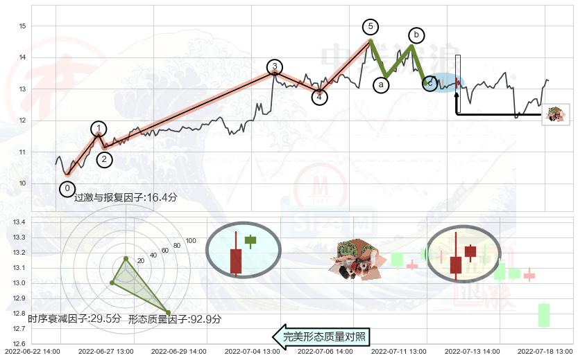 ➢ 🕰 价格走势在2022-07-12 13:00:00至2022-07-12 14:00:00期间形成顶部尽头线(下山虎),残存影响值:-3.00