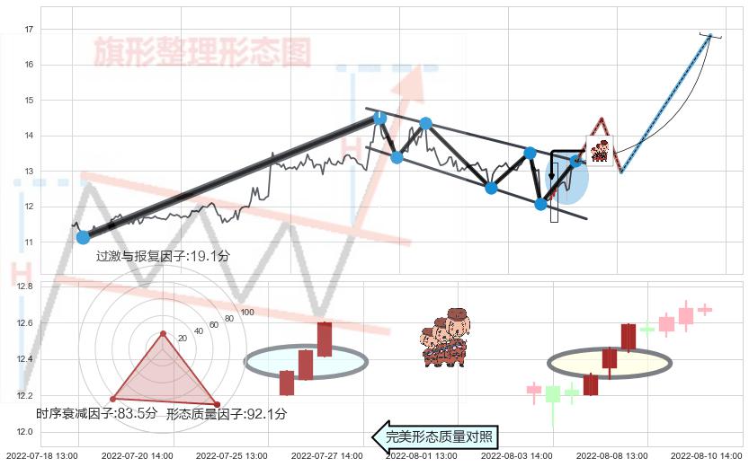 ➣ 【未确认突破,预测即将形成突破】降⚑旗形起点:05-06:09, 预测突破点:08-15:13,形态共229交易小时