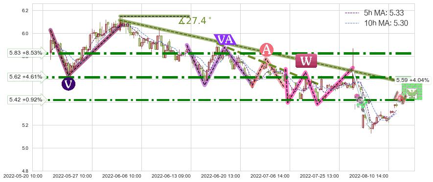 ➢ 预测:2022-08-17 14:00,【小幅反弹】稳定目前下跌趋势的前提下,预测价格:5.52