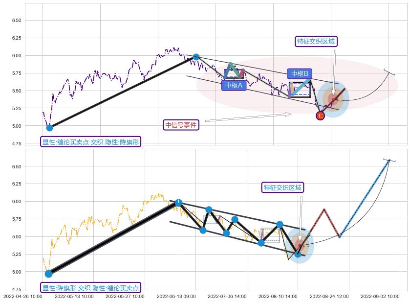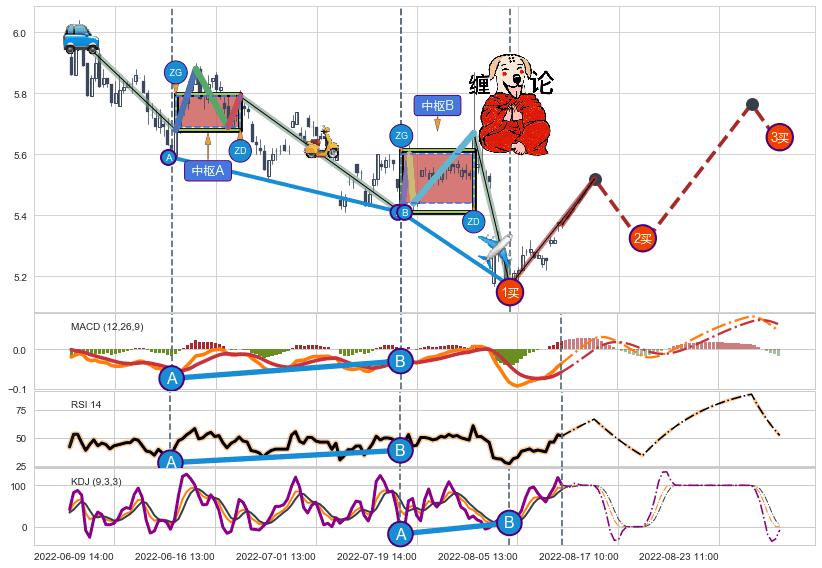 ➣ 缠论买卖点:下降缠中枢AB形成后猜想拐点1买已到达,猜想后续持续拉升(均值回复)