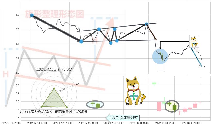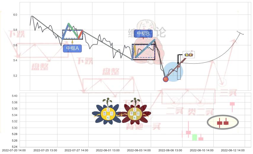 ➢ 🕰 价格走势在2022-08-08 14:00:00至2022-08-09 13:00:00期间形成下跌螺旋桨,残存影响值:-5.54