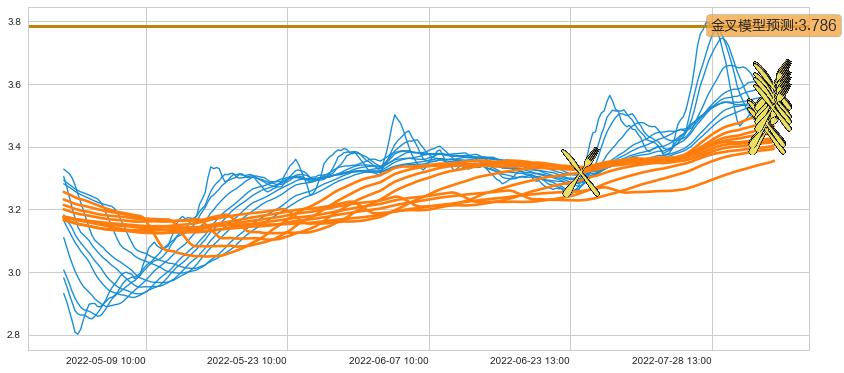 ➢ 30小时均线于(08-11 14:00: 3.598)形成【金叉】基于【金叉历史模型】预测金叉后最高波峰价格: 3.800, 金叉后最高价格3.870,已经上涨超出预测最高波峰价格, 预期回调