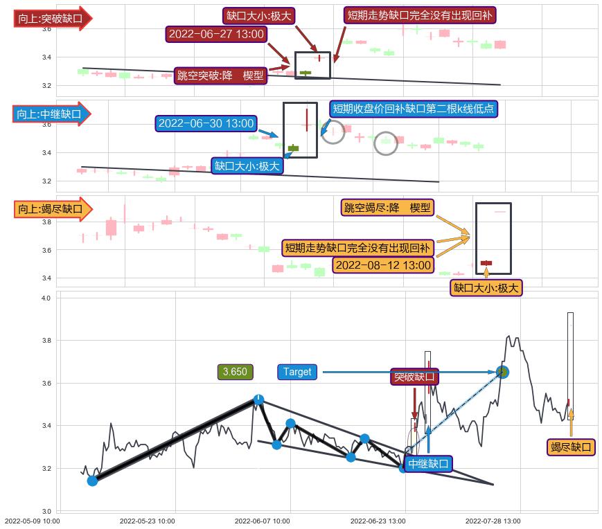 ➢ 2022-08-12 13:00形成:向上跳空【竭尽】缺口