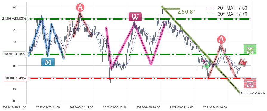 ♞ 20小时均线:17.53,30小时均线:17.70→ 快线<慢线
