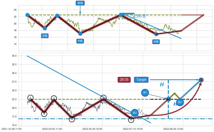 ➢ 图示②④⑥三个波谷均在 22.47 附近成功获得【支撑】→反弹上涨