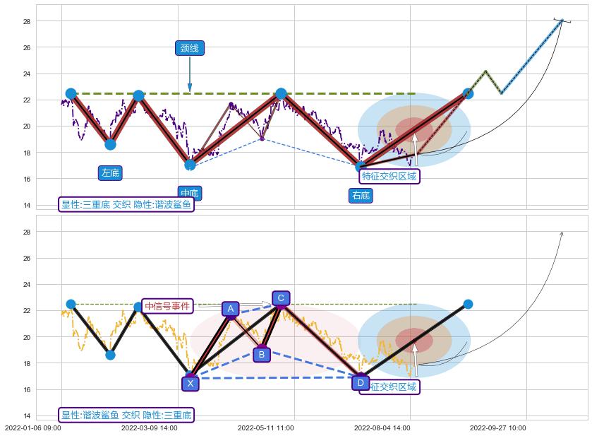 ➢ 谐波鲨鱼属【中级别信号事件】三重底属【长级别信号事件】中长周期组合信号事件,中长事件长度比49.25%