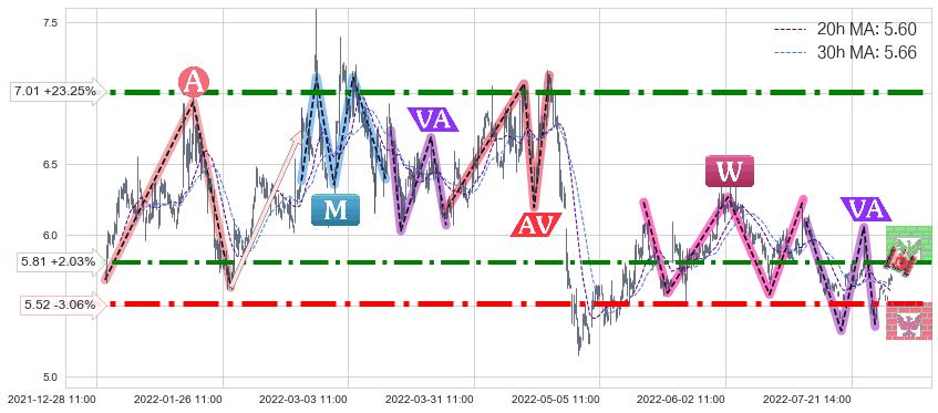♞ 20小时均线:5.60,30小时均线:5.66→ 快线<慢线