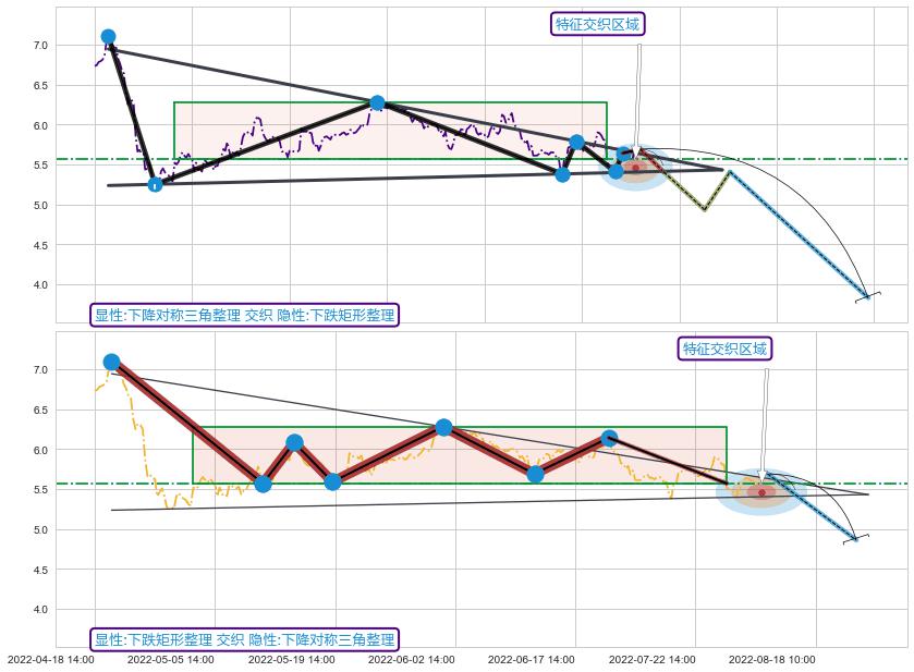 ➢ 下跌矩形整理支撑破位转换阻力下跌 🔜 下降对称三角整理临近支撑猜想转换阻力下跌 综合量化分数:34.79 【强烈看空】